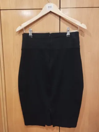 Falda de vestir en color negro. - Diseño elegante. - Cintura con trabillas. - Bolsillos traseros.