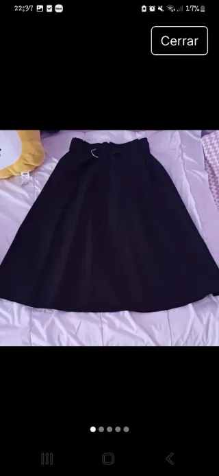 Preciosa falda negra plisada, ideal para cualquier ocasión. Es una prenda elegante y versátil. - Tejido suave y agradable al tacto. - Diseño plisado que le da un toque sofisticado. - Corte favorecedor.