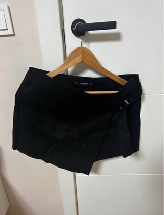 Falda pantalón de Zara con un diseño moderno y elegante. - Color negro. - Talla M (38/10). - Detalle de hebilla. - Corte asimétrico.