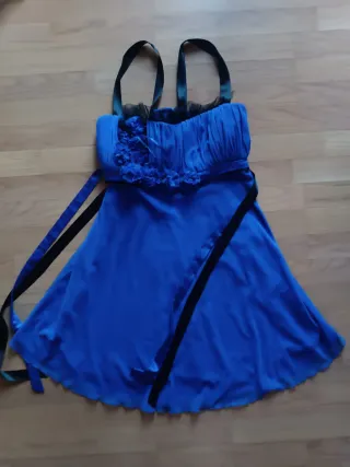 Vestido elegante con detalles de flores y tiras. - Diseño con corpiño fruncido. - Adornado con flores en relieve. - Tiras finas de satén negro. - Ribete de tul negro en el escote. Efecto vuelo de la falda, queda muy estilizado. Perfecto para eventos de graduación, comuniones, cumpleaños, boda, bautizos... usado 1 vez
