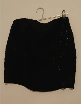 Falda corta negra con detalles de abalorios. - Diseño con abalorios dispersos. - Corte moderno y favorecedor.