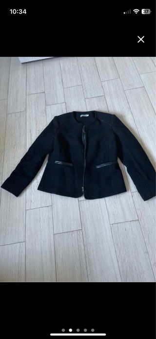Chaqueta tweed negra con bolsillos y cremallera para abrochar Talla 40 Usada un par de veces Regalo falda negra