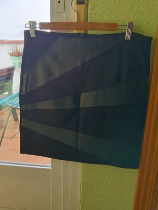 Falda negra Stradivarius efecto piel talla 42