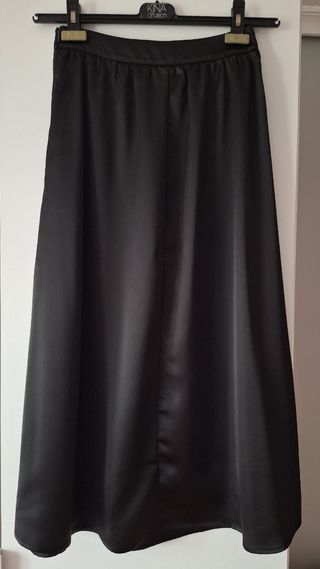 Elegante falda satinada de Kiabi. - Tejido satinado. - Diseño fluido. No se ha usado está nueva pero sin etiqueta. No tiene goma en la cintura por lo que me queda algo justa y no puedo ponérmela. Me regalaron una talla menos a la que suelo usar y no pude devolverlo por pasarse el plazo.