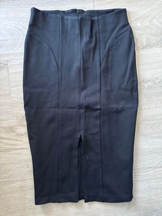 Elegante falda lápiz de corte recto, ideal para cualquier ocasión. - Diseño de talle alto. - Abertura frontal para mayor comodidad. - Costuras detalladas en la parte delantera.