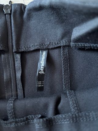 Falda corta negra de Zara con bolsillos. - Diseño con bolsillos frontales. - Cintura alta. - Corte acampanado.