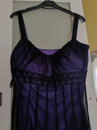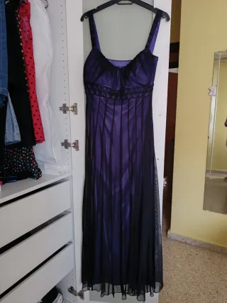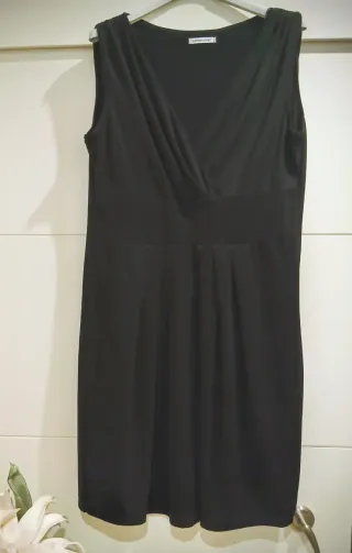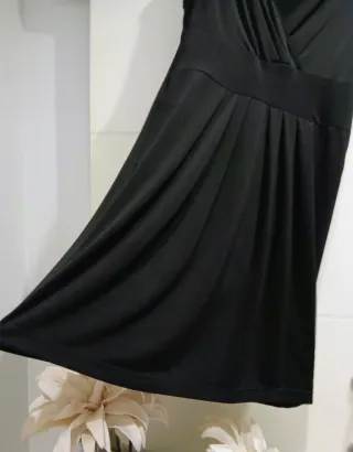 Vestido negro sin mangas con escote cruzado. - Diseño con cintura marcada. - Falda con pliegues. Largo. Total 93 Cintura 84 Cadera 120 TEJIDO: Punto-licra