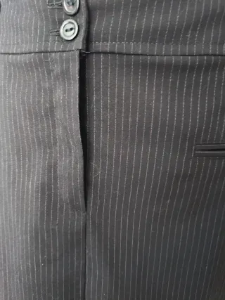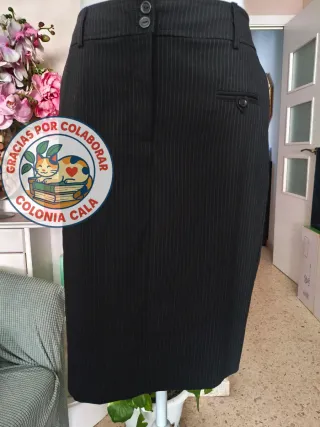 Falda de vestir elegante con un diseño de rayas verticales finas. - Diseño de rayas verticales. - Bolsillo delantero con botón. - Cierre con dos botones en la cintura. - Abierta por detrás. - Dispones de más artículos en nuestro escaparate solidario. Todo lo recaudado va destinado a la gestión de Colonia Cala.