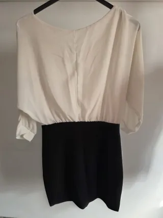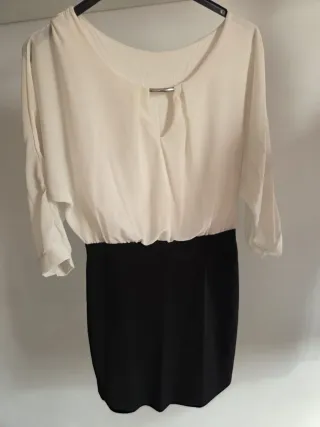 Elegante vestido de noche con un diseño bicolor. - Parte superior en blanco. - Falda en negro.