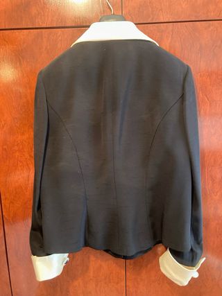 Elegante conjunto de chaqueta y vestido hecho y diseñado a mano. Original. - Chaqueta con cuello y puños en contraste. Se pueden quitar y poner fácilmente. - Detalle bordado en el cuello pintado a mano. - Cierre de botones en la chaqueta. - Vestido elegante y atemporal.