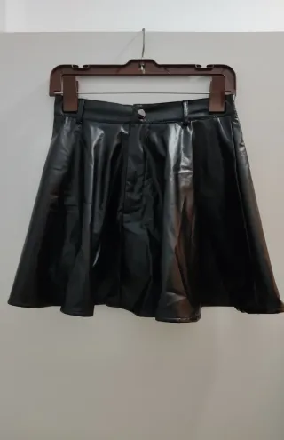 Falda de efecto piel en color negro. - Diseño moderno y versátil. - Acabado liso y brillante.