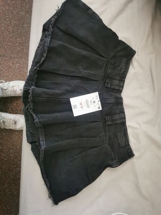 minifalda denim negra efecto lavado del Bershka talla M, sin estrenar y con etiqueta, es falda pantalón