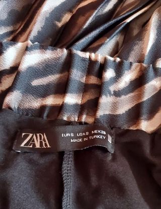 Falda pantalón en color negro de raso de Zara con aberturas laterales. Talla M. Puesto una vez. Queda corta. Al final hay una foto con la misma en color estampado de zebra para ver como queda. La vendo también en estampado de zebra. Descuentos por la compra de varios artículos de hasta el 40%! Echa un vistazo a mi perfil 😊