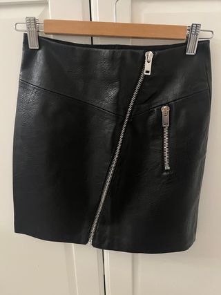 Falda corta negra efecto cuero, usada un par de veces en muy buen estado.