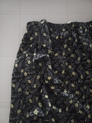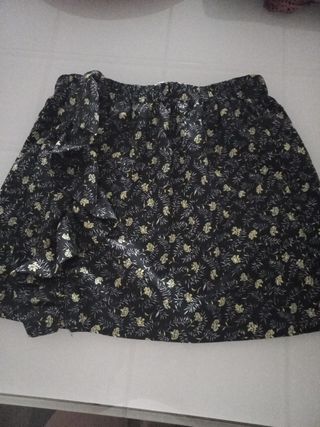 Falda negra corta con flores, tipo pareo, de Lefties. Talla M