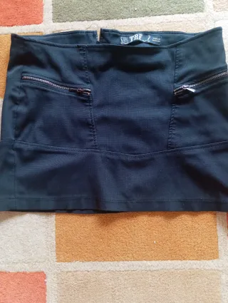 Falda de polipiel con cinturón y cremallera frontal. Tiene dos pequeñas marcas en el delantero y falta una argolla final en el cinturón, ver fotos, lo demas está bien - Diseño moderno con cinturón. - Cremallera metálica. - Material polipiel.