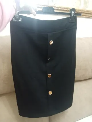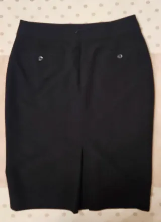 🛍️ Falda negra de traje en buen estado 🧸Talla: 44 👑Marca: Dimar 🧲Material: 100% poliéster 📚Color: negro ☎️Información🗒️: si desea puedo proporcionarle más fotos y medidas, como cualquier duda que tenga.❔