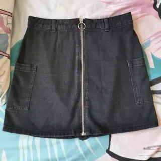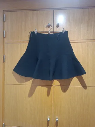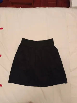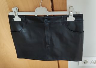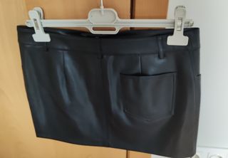 Falda corta de polipiel, de color negro, con forro y bolsillos. Talla S. Nueva, sin uso. Comprada en Sfera. Más cosas en mi perfil, echa un vistazo!!!