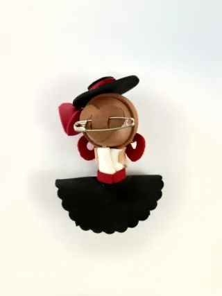 Este broche o alfiler hecho a mano representa una figura de flamenca con un diseño tradicional. Esta realizaron en goma Eva y mide 9 cm. Nuevo, sin usar. Comprado en un mercado de artesanía. - Adorno de flor roja. - Sombrero negro con detalles rojos. - Falda negra con volantes. Muy original, divertido. El regalo perfecto para amantes del flamenco, sevillanas... para navidades, amigo invisible, cumpleaños etc. #brocheartesano #alfilerartesano #flamencostyle #flamenco #sevillanas #trajeregionalandalucia #España #tipicalspanish