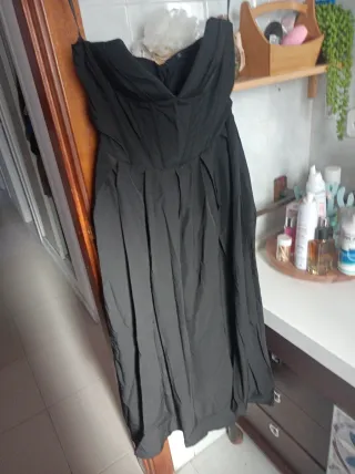 Elegante vestido negro sin tirantes. - Diseño strapless. - Falda con pliegues. Largo hasta los tobillos. Nuevo sin estrenar. Comprado por error en este color y no se pudo devolver. Puesto queda espectacular. Corpiño con ballenas. No tiene marca. Lo compré por internet a una marca extranjera.