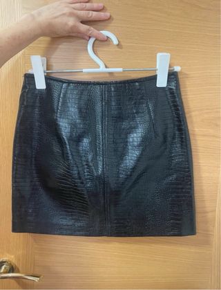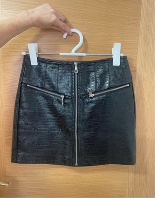 Falda corta de efecto piel con textura de cocodrilo. Talla S, Bershka - Cierre de cremallera frontal.
