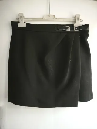 Mini falda de la marca Zara. - Diseño cruzado con detalle de cinturón. - Color negro. - Cremallera lateral.