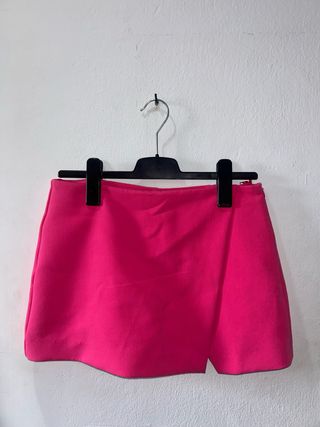 Falda pantalón de Zara, colección Pop / Winter, color fucsia intenso. Con short interior y corte estructurado. ✔️ Buen estado ✔️ Color vivo Talla: no indicada en la etiqueta. Equivale aprox. a XS / S. 👉 Medidas exactas visibles en las fotos (metro incluido).