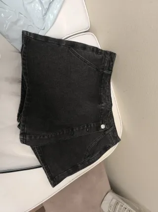 Falda pantalón corta negra, de tela como de plumeti. Sin estrenar, talla y sienta bien, pero la vendo porque para mi es demasiado corta.