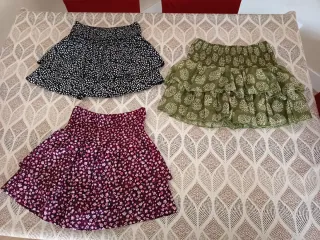 Conjunto de tres faldas cortas con estampado floral y cintura elástica. - Diseño ligero y vaporoso. - Estampado de flores pequeñas. - Cintura fruncida para mayor comodidad. - Falda pantalón para más seguridad. Cada falda 10€ Pack de 3 faldas 20€