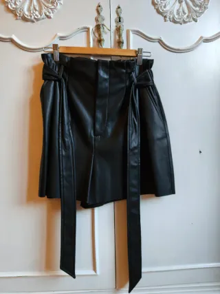 Falda pantalón de Zara con un diseño moderno y elegante. - Confeccionada en efecto piel. - Cintura alta con cinturón para anudar. - Corte amplio y fluido.