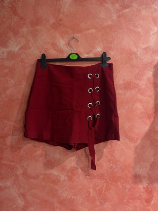 Falda pantalón de color granate con un diseño moderno. - Detalle de lazada frontal con ojales metálicos. - Corte favorecedor. - Tejido de calidad.
