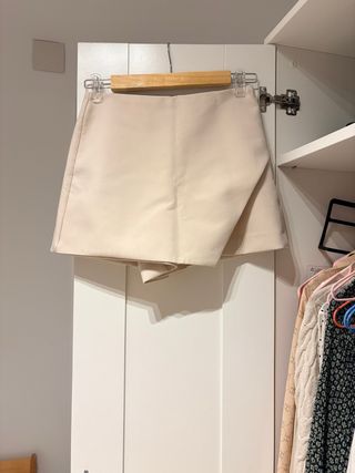 Falda corta de Zara en color beige. Diseño moderno y versátil. - Tejido de calidad. - Corte asimétrico.