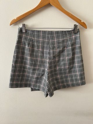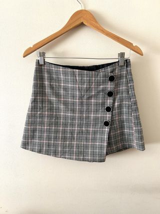 Falda pantalón corta de Stradivarius con estampado de cuadros. - Diseño cruzado con botones. - Detalle de botones negros. - Tiro alto.