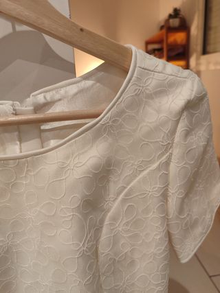 Top de novia blanco o más bien beige roto. Nuevo sin etiqueta. Bonito, elegante y nada recargado. Muy versátil para llevar con falda o pantalón de vestir también. También sirve como top de fiesta oñi ocasiones especiales, bautizos, comuniones, etc. Cierre en la espada con botones pequeños. Muy bonito