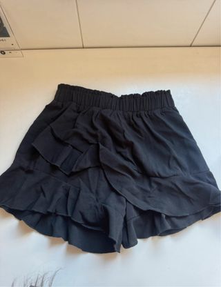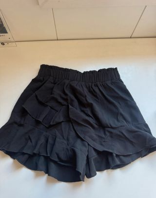 Shorts estilo falda pantalón negro de Zara. Tiene un diseño moderno, elegante y favorecedor. - Tejido con caída y movimiento. - Detalle de volante en la parte inferior. Talla XS y están nuevos, sin estrenar.