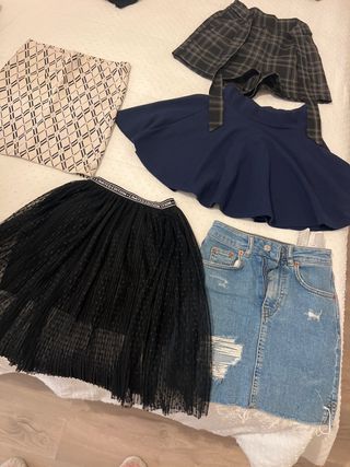 Pack de 5 faldas variadas. 2euros por falda. Suelta 4 euros cada una - Falda de cuadros - Falda azul skater - Falda negra de tul - Falda vaquera con rotos - Falda/Pantalon