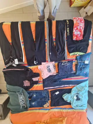Conjunto de ropa nueva para niña de 16 años. 7 pantalones (tejanos y mallas 1 Adidas) 1 falda tejana 1 jersei 3 sudaderas 2 vestidos ( 1 de Tommy Hilfiger). Su valor real es de más de 150. Totalmente, es un regalo y un chollo. Precio no negociable. Sólo sera negociable si se quiere prendas sueltas.