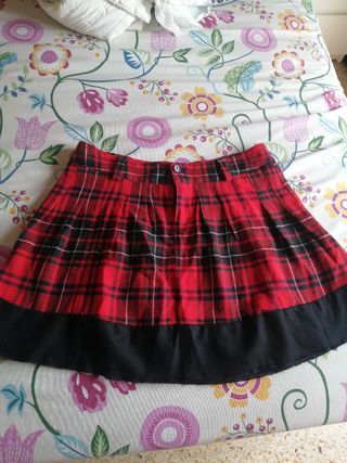 Falda con un clásico estampado de cuadros. -Falda con pantalón debajo