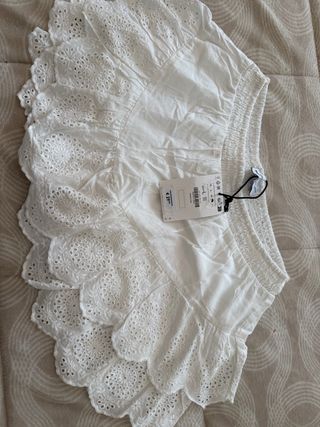 Falda pantalón Zara blanca bordada