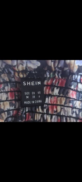 Conjunto top y falda-pantalón corto SHEIN nuevo sin usar color beige. Incluye bolsa original. Envío rápido donde quieras. - Prenda de dos piezas. - Estampado abstracto en color negro sobre fondo beige. - Tejido suave y ligero.