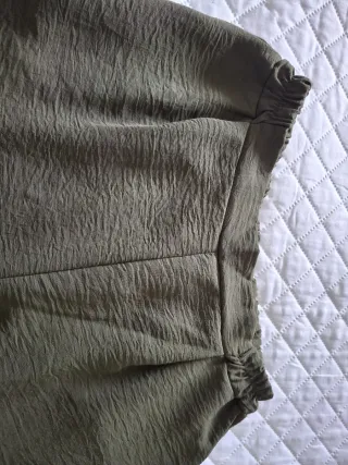 Falda pantalón de color verde militar con un tejido texturizado. - Cintura elástica. - Piernas anchas y fluidas. - Diseño tipo culotte.