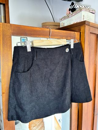Falda corta con un diseño moderno y detalles de botones. - tiene pantalon debajo