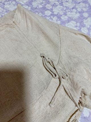 Elegante blusa crop top con estampado vibrante y mangas largas abullonadas. Perfecta para añadir un toque de color a tu outfit. Puede usarse junta o separa con la falda pantalón, el enterizo también es falda pantalón 15 euros cada conjunto - Diseño anudado al frente. - Tejido ligero y vaporoso.