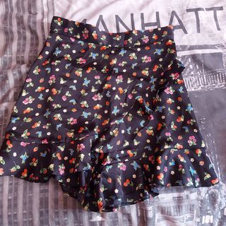 Falda corta con un bonito estampado, con pantalón por dentro.