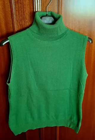 Precioso top sin mangas con cuello alto. Buena calidad, muy buen estado. Para combinar con tus faldas o pantalones. Entallado, estiliza figura. - Diseño de cuello alto. - Tejido de punto. - Sin mangas.