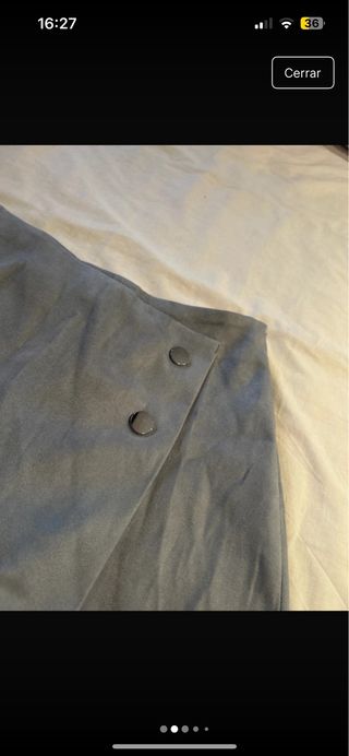 Preciosa falda pantalón de color gris. Es una prenda elegante y versátil, ideal para cualquier ocasión. - Diseño de falda pantalón, con botones negros. - Corte recto y favorecedor. - Tejido de calidad.