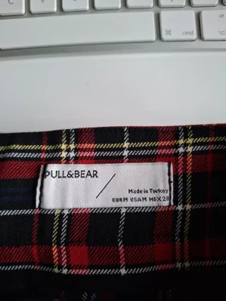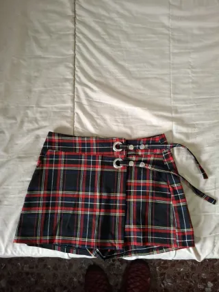 Falda pantalón de cuadros de Zara. - Diseño plisado. - Detalle de cinturón con hebillas.