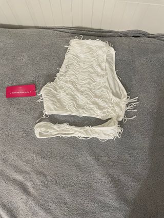 Conjunto de dos piezas de Shein. - Top sin mangas con diseño recortado. - Falda pantalón con cordones ajustables en los laterales. - Tejido con textura fruncida.