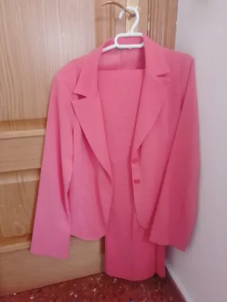 Conjunto de chaqueta y falda en color rosa. - Chaqueta con solapas y cierre de botón. - Falda recta.