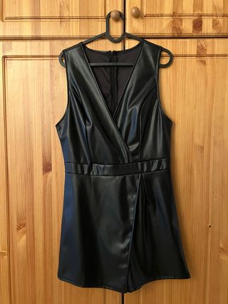 Mono de polipiel, talla M-L. Puesto una única vez. - Material: Polipiel. - Diseño cruzado en la parte superior. - Cintura marcada. - Falda pantalón con abertura.